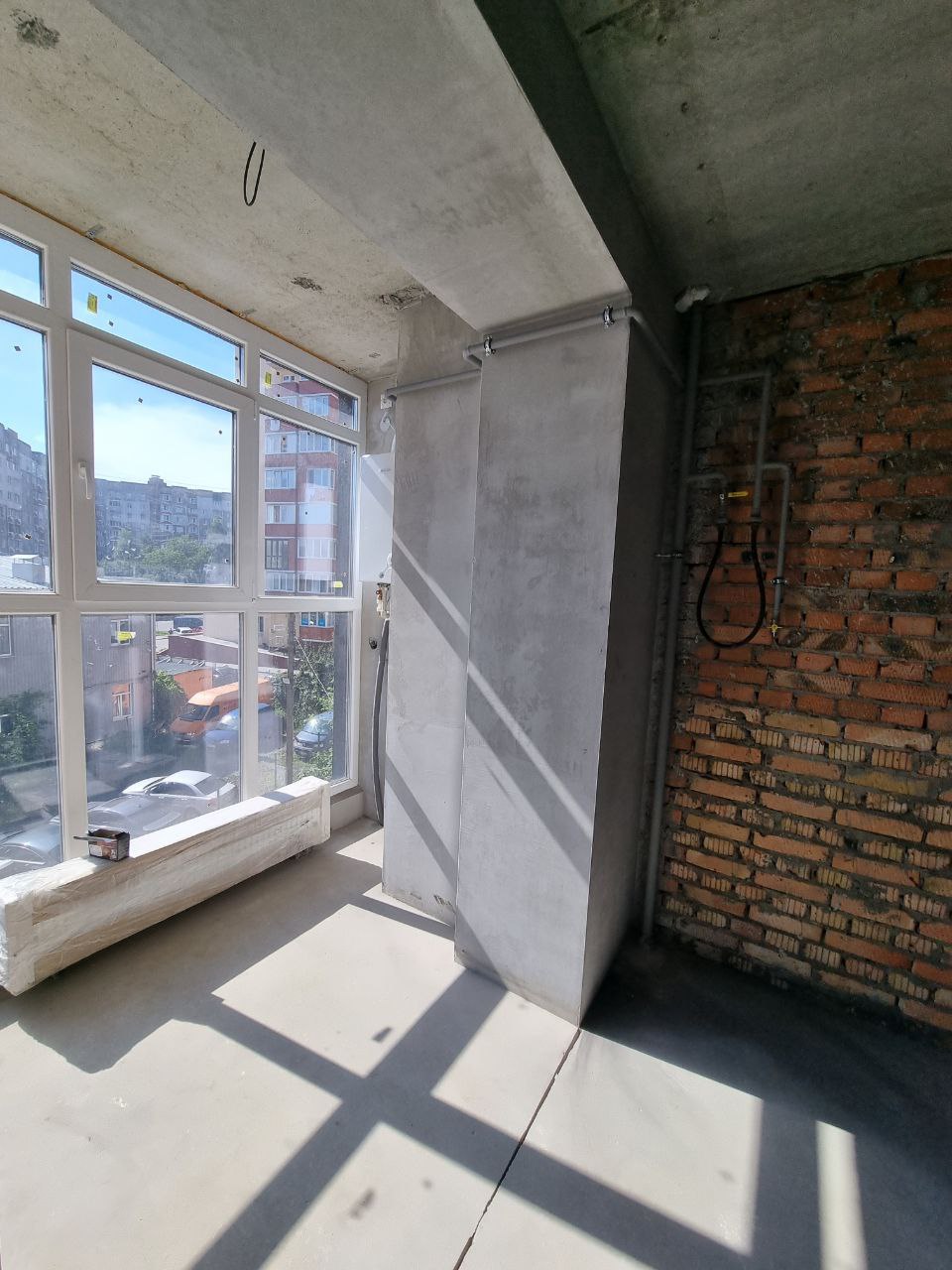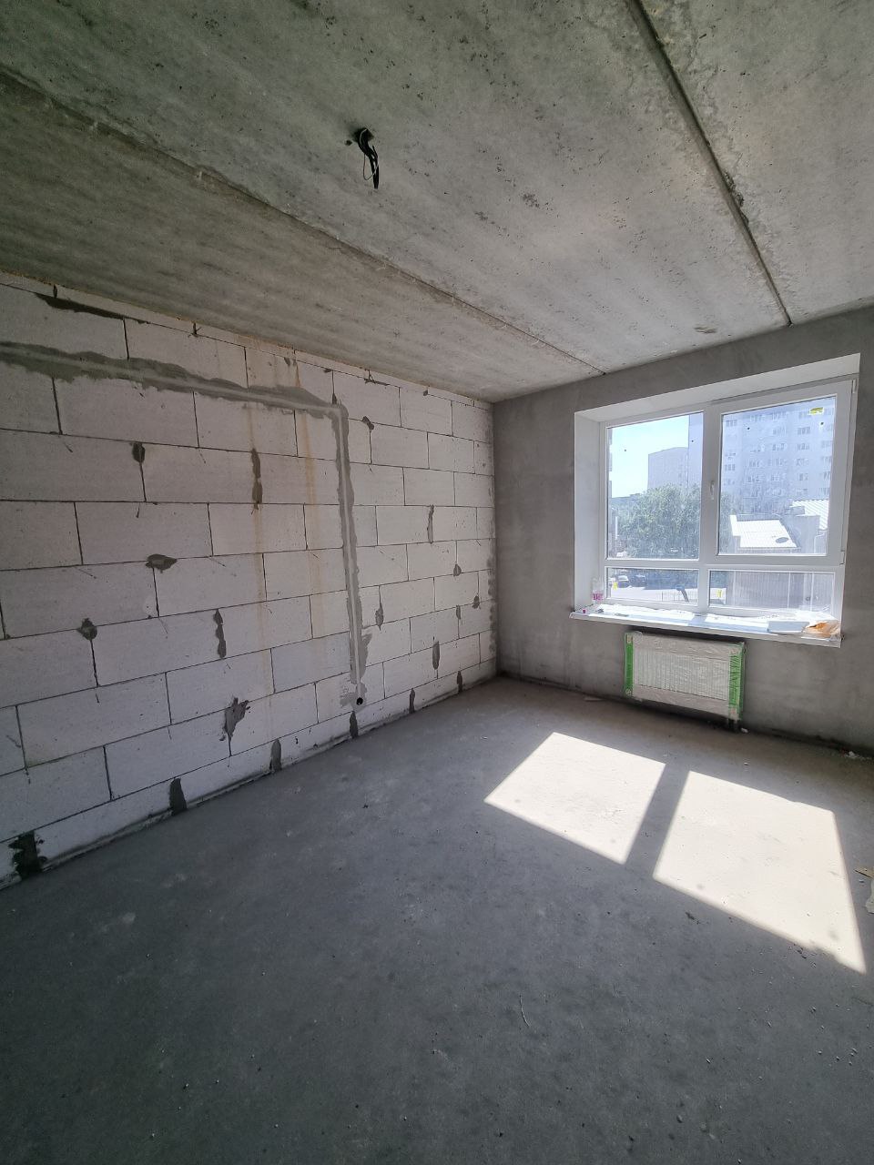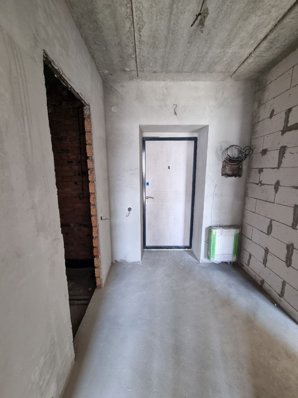 Чистова стяжка підлоги, штукатурка стін, розводка опалення, встановлено радіатори та котел, якісні вхідні двері.