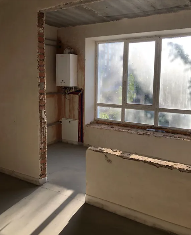 квартира розташована на першому поверсі (другий рівень) десятиповерхового цегляного будинку.Кухня обєднана з лоджією 19 м.кв.Вікна виходять на захід.По всій квартирі зроблена якісна стяжка та тепла підлога, що надає можливість зекономити на встановлені батарей. Виконано розведення труб водопостачання та каналізації. Встановлений газовий котел, лічильник.
