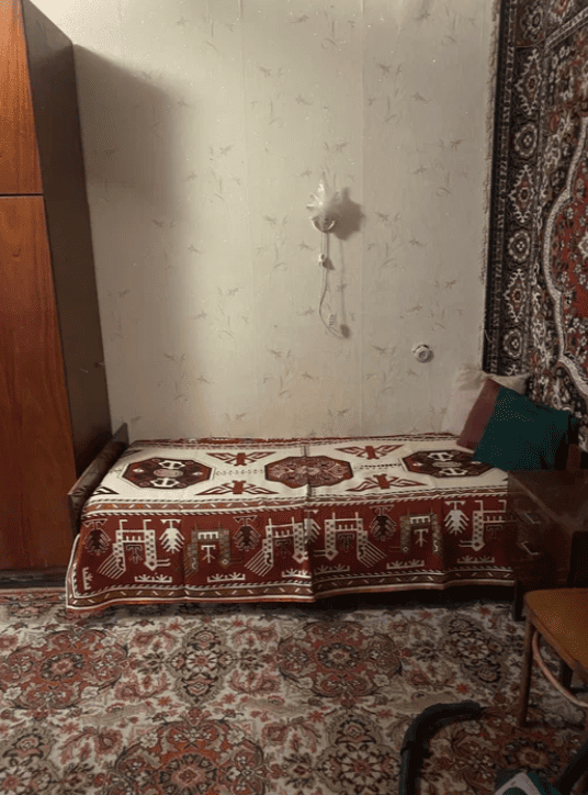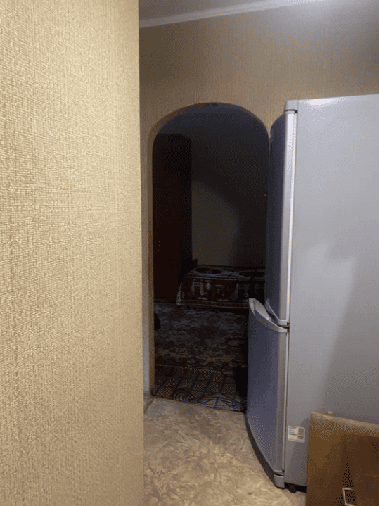 В квартирі є посуд, холодильник, пралка, телевізор, деякі меблі; в пішій доступності ринок, лікарня, дитсадок, школа.