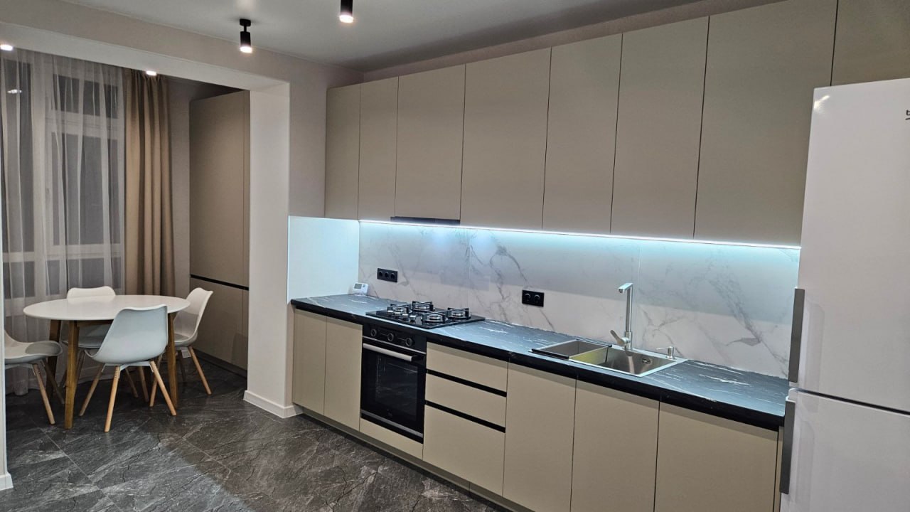 Квартира повністю укомплектована для проживання. Є вмонтована техніка та меблі: посудомийна машина, пральна машина, холодильник, духовка, двоспальне ліжко, розкладний диван, кухонний стіл, гардеробна кімната та інше. Тепла підлога: кухня, коридор, санвузол. Є балкон відкритого типу.