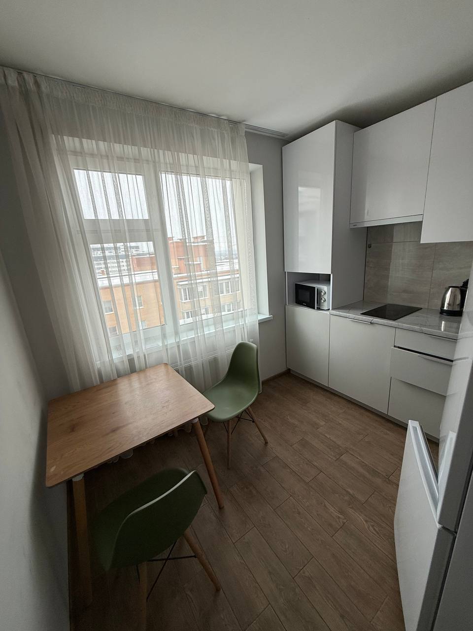 Сучасний ремонт в світлих тонах, є необхідні меблі та техніка. Квартира на електриці.
