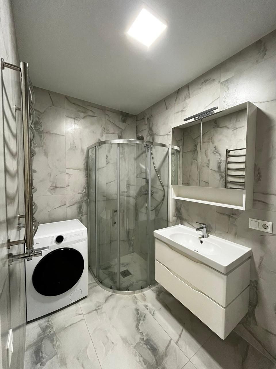 Повна комплектація ( кондиціонер, посудомийка, прально-сушильна машина, фільтр на воду).В ОСББ є генератор, ліфт не вимикається при відсутності світла. У вартість оренди входить своє паркомісце.