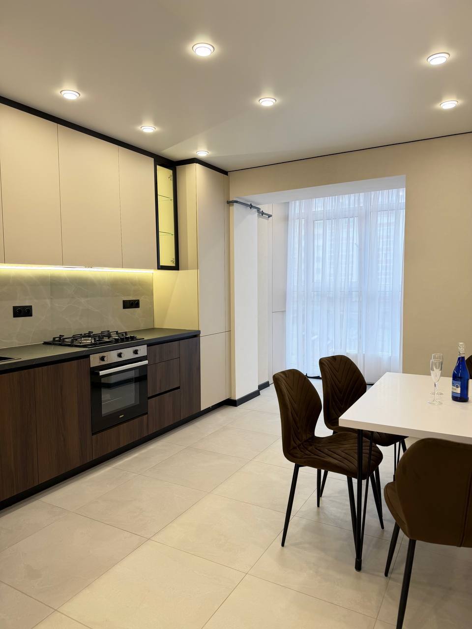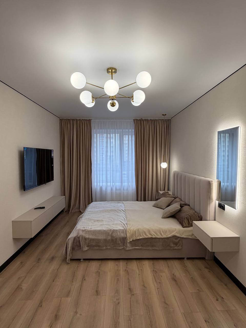 Тепла підлога (санвузол), французький балкон, панорамне вікно на кухні, техніка ( посудомийка, холодильник, телевізор, пральна машина).