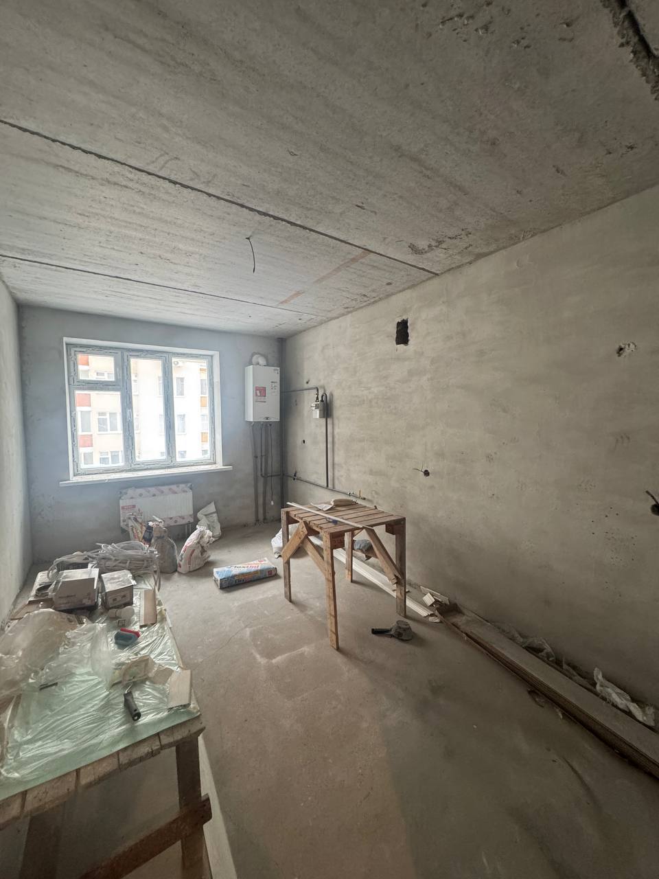 Максимальне наповнення від забудовника- стяжка, штукатурка стін, розводка електрики, встановлені радіатори, двоконтурний котел, лічильники на всі комунікації, інтернет.