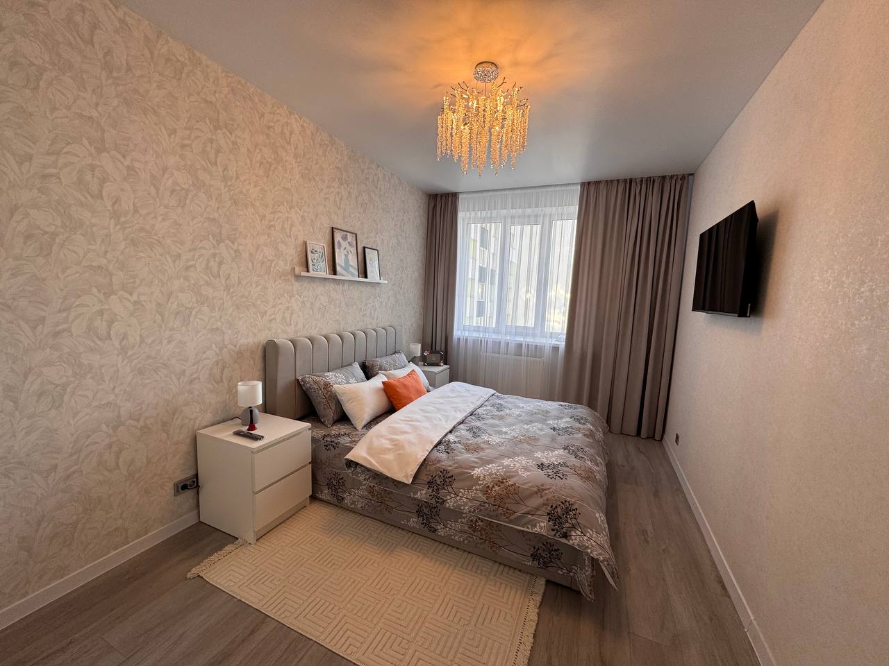 Квартира не кутова, вікна в двір, євроремонт, тепла підлога - св, кухня, лоджія і коридор. Все, що на фото залишається, техніка - холодильник, пральна машинка (на кухні біля мойки), варочна поверхня, духова шафа, мікрохвильова піч, витяжка, телевізор. Є гардеробна.