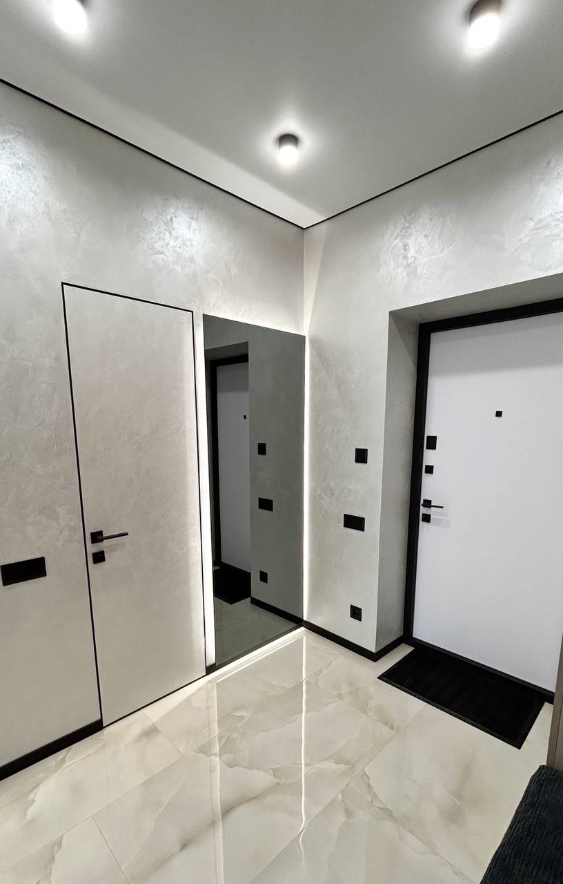гарний та справді якісний, дорогий ремонт. Тепла підлога крім кімнати, двері прихованого монтажу, фільтри на воду, всюди вмонтовані підсвітки, по всій квартирі венеціанська штукатурка, гарний вигляд з вікон, облаштована гардеробна в кімнаті.