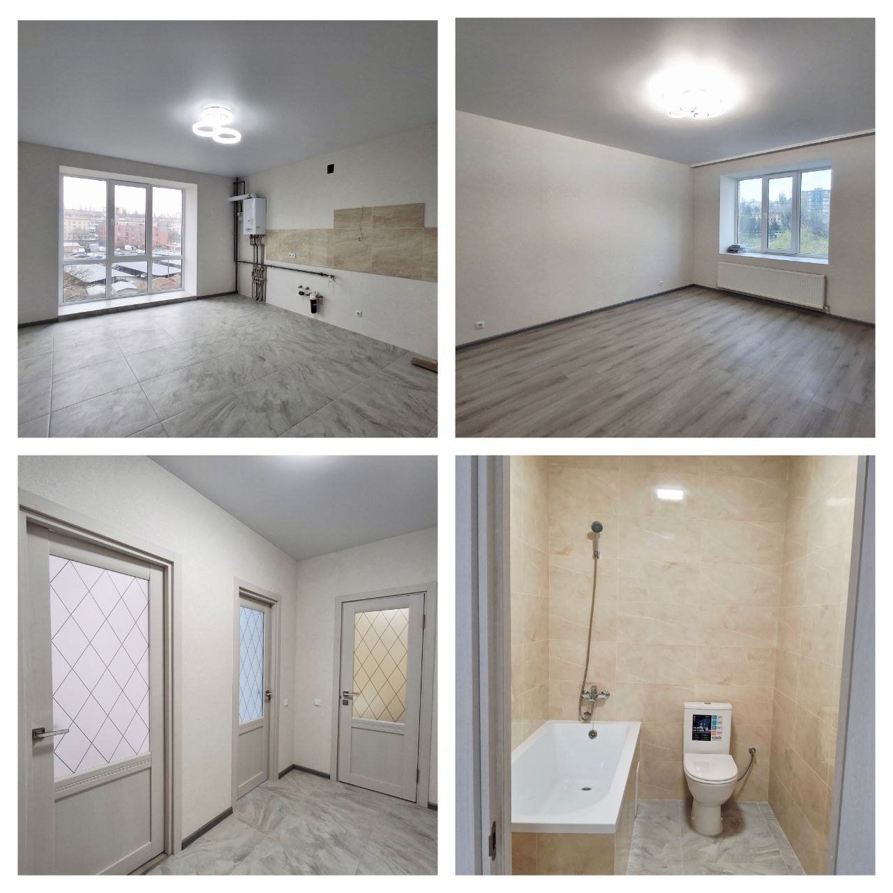-в кімнаті на підлозі - ламінат, кухня, коридор - плитка,