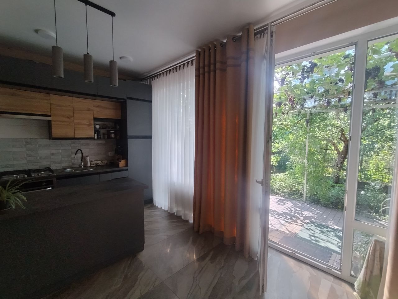 Дві окремі спальні, два санвузли, велика кухня вітальня з виходом на власне закрите подвір'ячко.