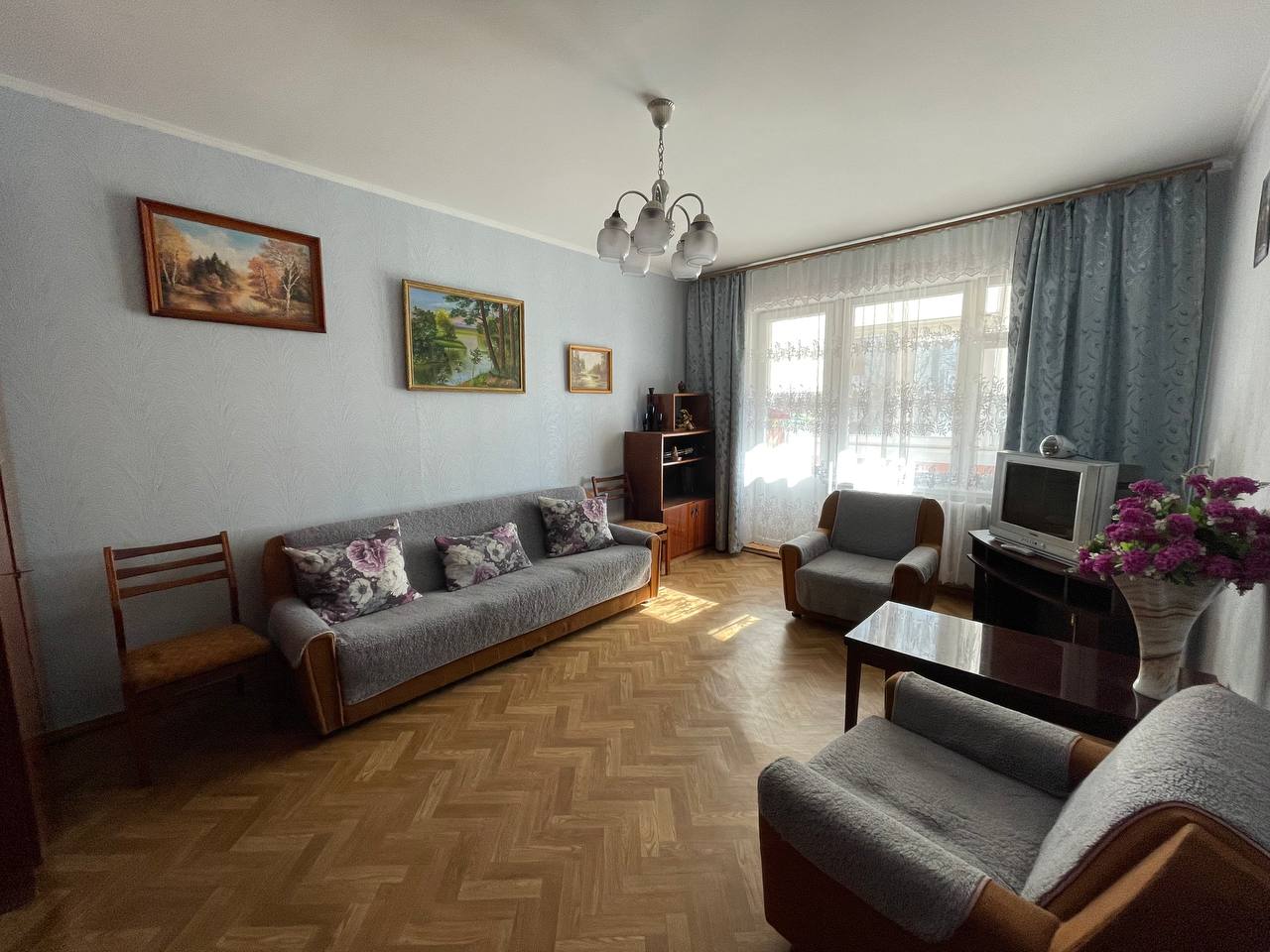 південна сторона, м/п вікна, залишаються меблі та техніка.