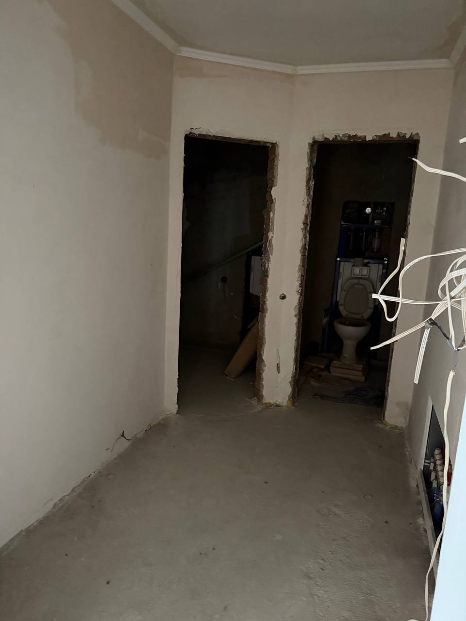 В квартирі зроблений ремонт під чистові роботи. Стяжка. Чистова штукатурка. 2 сан вузла.