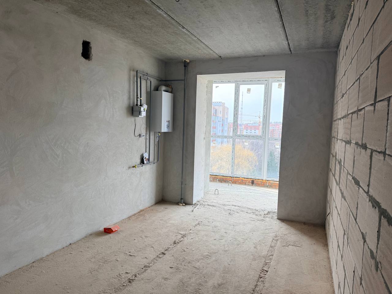 Новобудова.  Здана секція. Стан після будівельників. Двоконтурний котел.