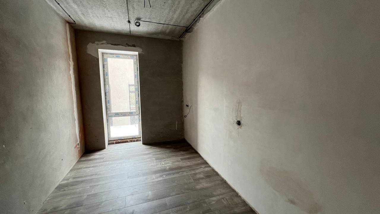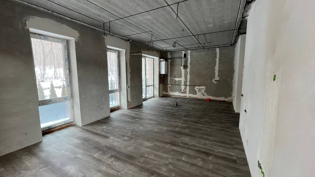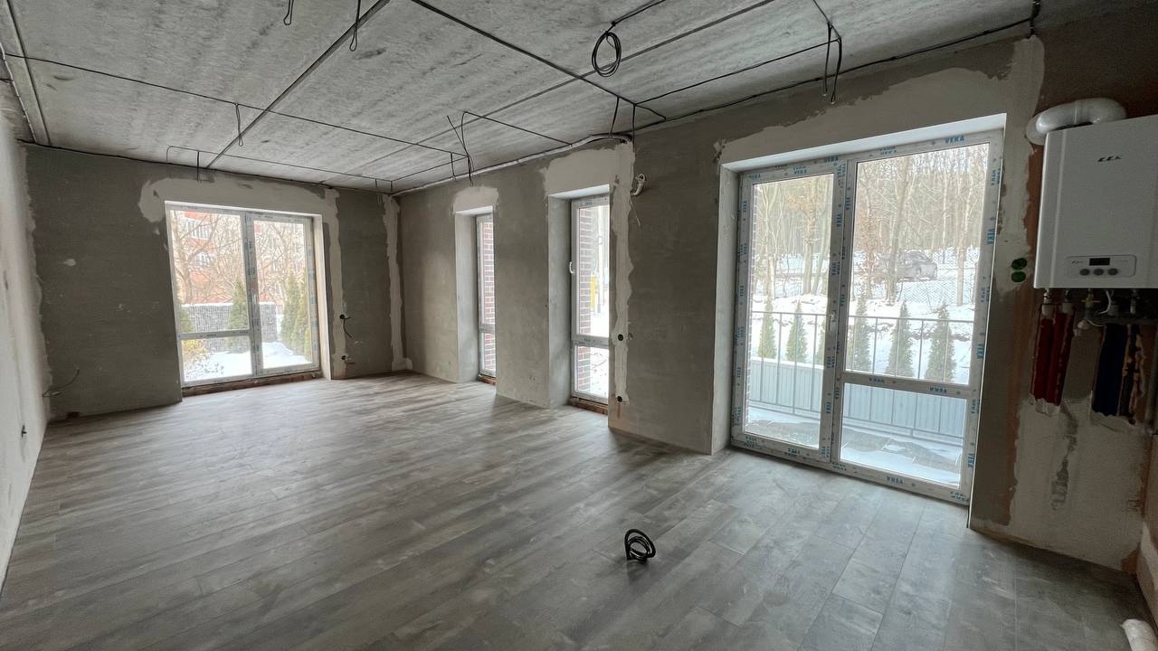 Планування продумане і функціональне: кухня-вітальня з панорамними вікнами, дві окремі кімнати, санвузол та окреме приміщення. У зоні кухні передбачений вивід під кухонний острів.