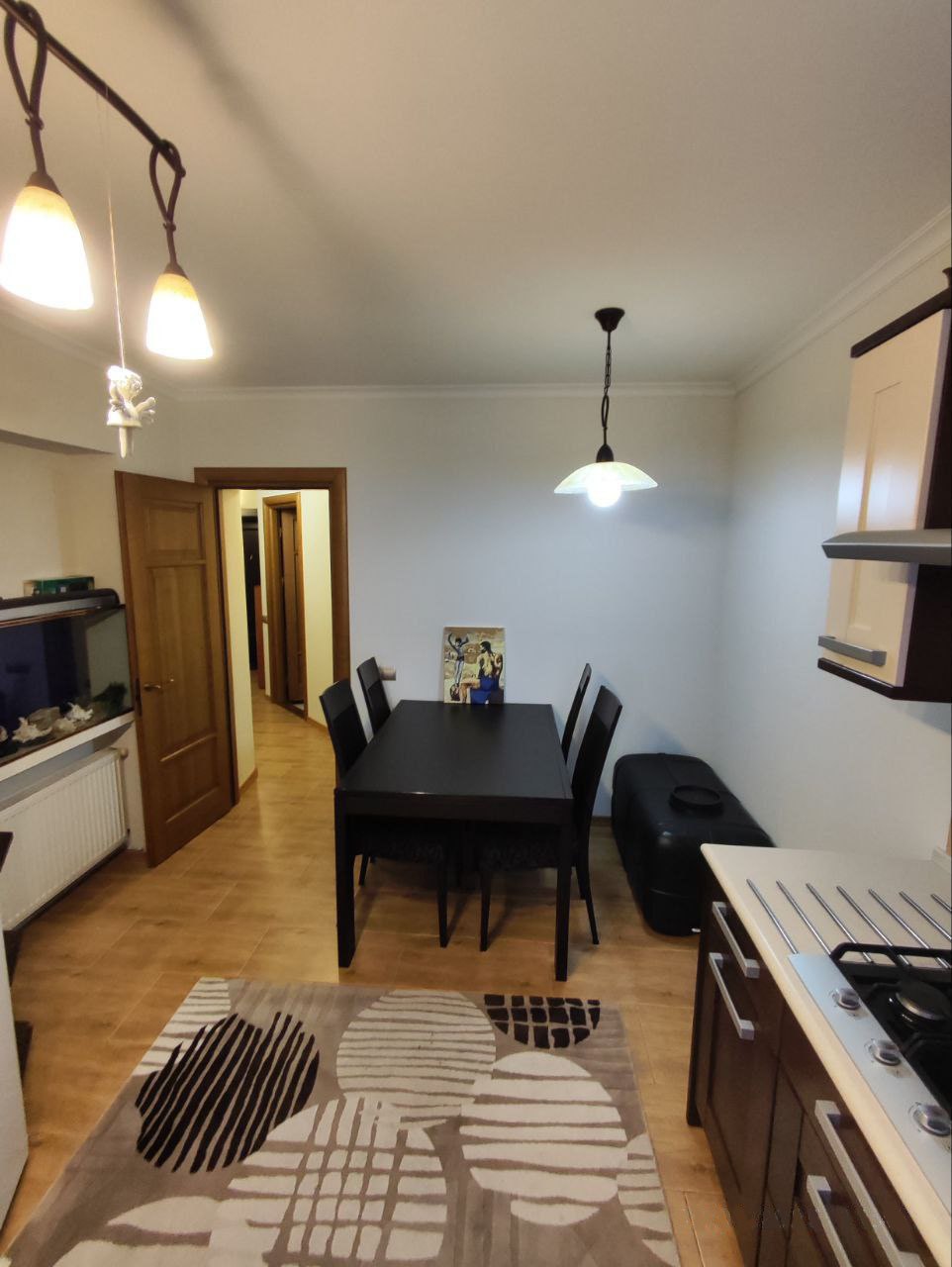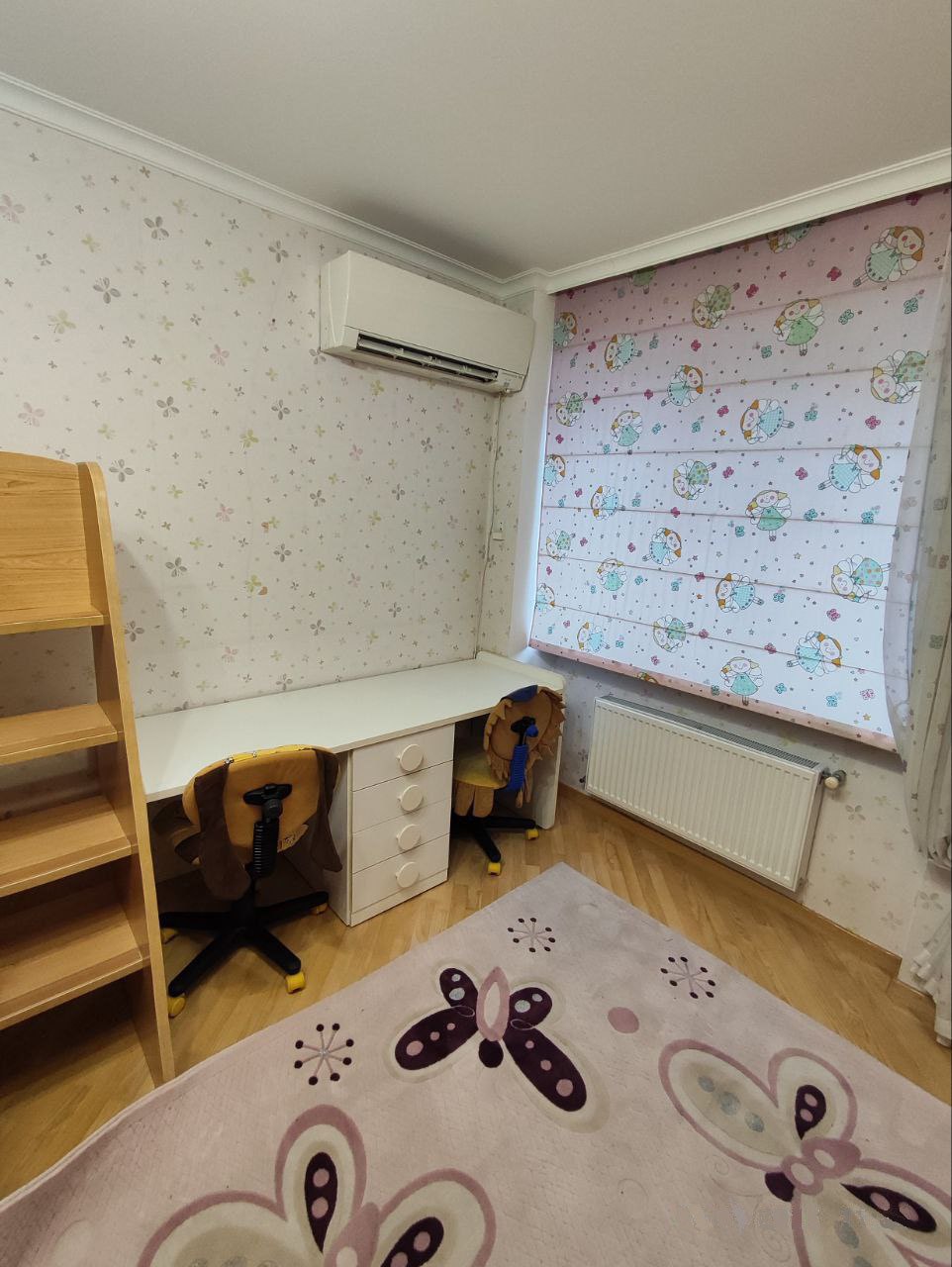 У дитячій кімнаті та кухні також встановлено кондиціонер. Підлога - якісний паркет. У квартирі індивідуальне опалення із встановленим французьким котлом.