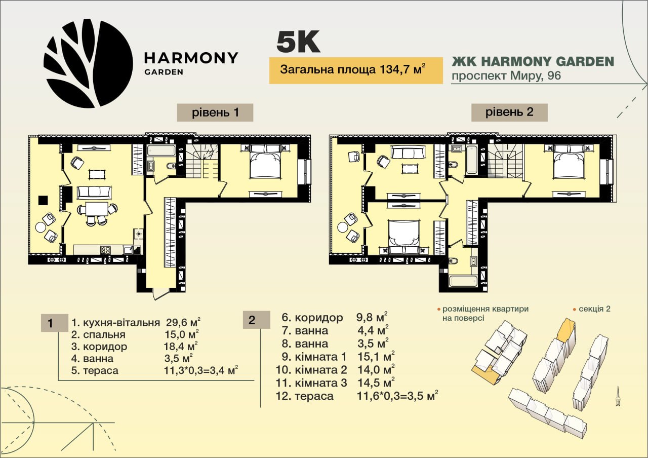 2-рівневий пентхаус з власними терасами на обох рівнях