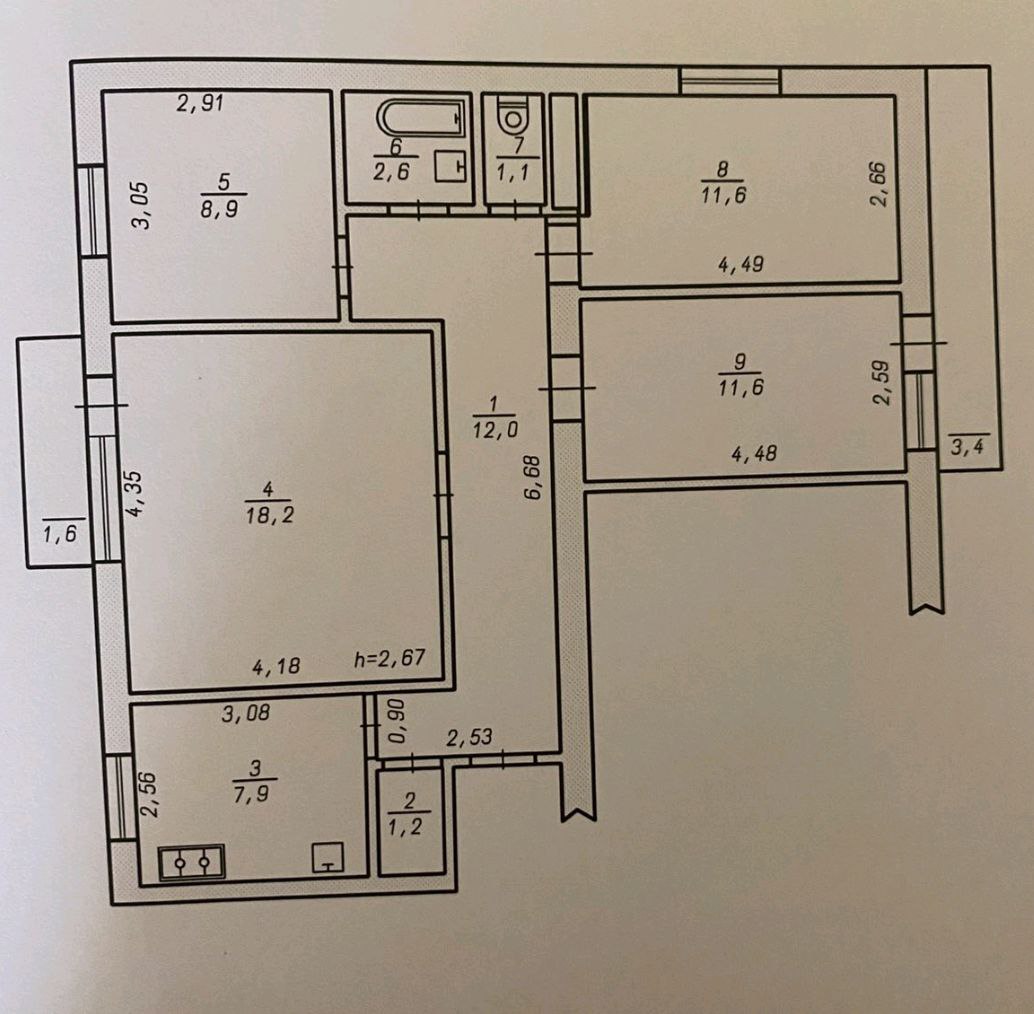 Цегляний будинок, житловий стан. Потолки вирівнені, Кімнати роздільні. Кухня збільшена за рахунок кладовки.