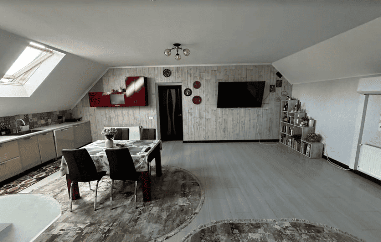 До котеджу ідеальна дорога з бруківки, яку поклали в 2023 році. Перед будинком 2 паркомісця. Великий гараж з автоматичними воротами на 2 машини. Два поверхи. На першому поверсі велика кімната, санвузол, кухня і вихід на терасу. На другому поверсі 4 кімнати, санвузол і вихід на велику терасу другого поверху. В будинку проживало дві сімʼї, тому було зроблено 2 кухні на першому поверсі з газовою плитою і на другому поверсі велика кухня 48кв.м. З індукційною плитою. Але ту кухню можно переробити під кімнату. Задній двір з великою кількістю хвойних дерев та кущів, ліщина, фундук і беседка обвита рослиною «актінідія» «маленьке ківі»яка доволі добре дає затінок влітку і плоди доволі смачні. В 20 метрах від будинку продовольчий магазин, поряд зупинка громадського транспорту. 500 метрів від котеджного містечка школа і садочок. Вода централізована, септик, світло і газ. Поряд є озеро, ліс і басейн. На першому поверсі готові димоходи для каміну.в будинку встановленні 4 потужні теплові насоси.