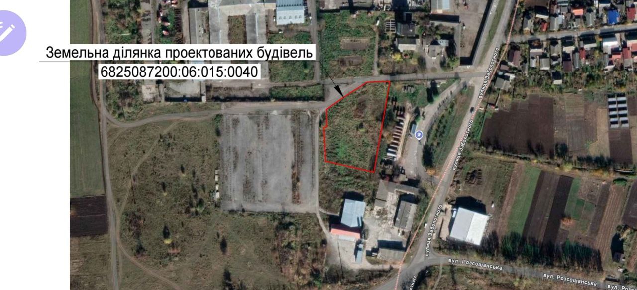 Зручне розташування ділянки - асфальтований під'їзд, поруч зупинка громадського транспорту, виїзд на Східну об'їзну міста Хмельницького.